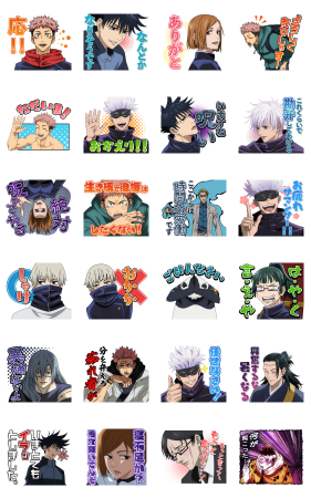 呪術廻戦のスタンプです。かっこいいですね!24種類ダウンロードできるのは良いですね!