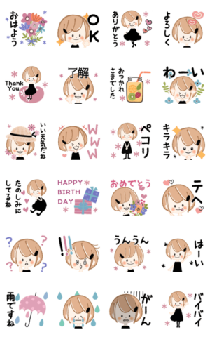 可愛い大人ガールの毎日使える日常スタンプです。 あいさつ/女の子/花/ハート/可愛い/シンプル