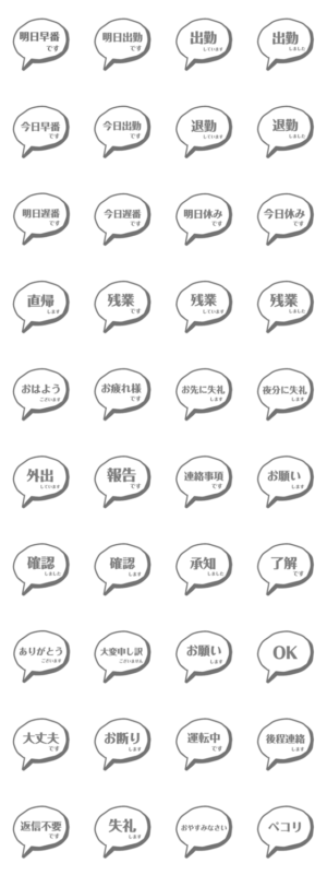 仕事連絡スタンプ。シンプルで使いやすい スタンプ画像一覧