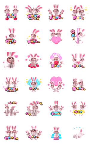 元気いっぱい、画面いっぱいに飛び出します。ねこちゃん好きの方へ♪日常会話で使いやすいポップアップスタンプです。今回は、うさぎのパジャマです♪山口タカ より発売