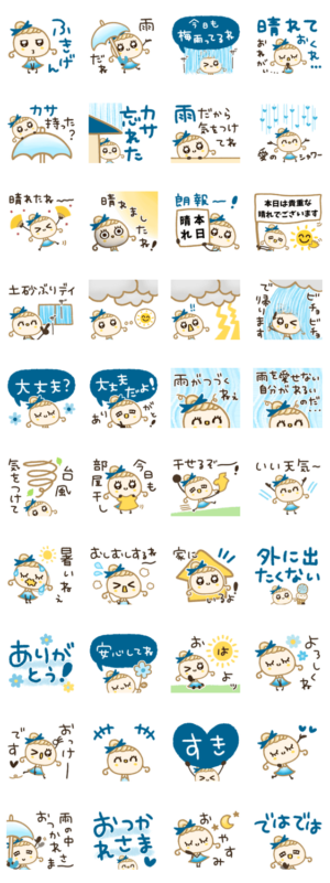 ほぺ美ちゃんシリーズ!梅雨以外の時期でも使えるお天気スタンプが、沢山詰まってます♪小さな幸せ/感謝あさごぱん より発売