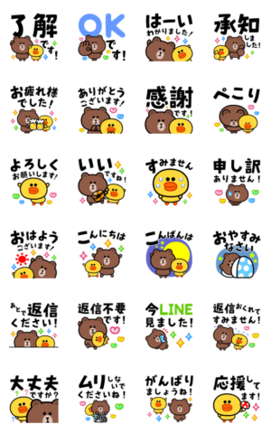 大人気のブラウンとサリーの飛び出す挨拶スタンプ♪くっきり見やすい【でか文字】だから使いやすい!友達との会話や家族の連絡にどうぞー!