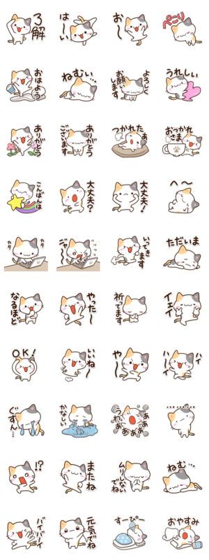 『小さい三毛猫』の『着せかえ』と『絵文字』もあります!毎日便利に使える言葉やあいさつのミケネコスタンプです。かわいい、みけねこ好きな方にぜひ。【かたこ】かたこ より発売