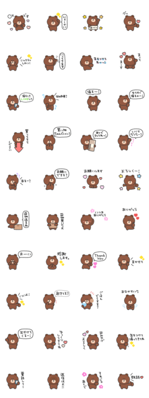 1つあると便利なブラウンのスタンプ。シンプル/かわいい/大人可愛い/毎日使える/あいさつ/くま/連絡/家族/恋人/友達 ※BROWN & FRIENDS をみんなでつくろう!キャンペーン参加スタンプですhitonatsu より発売