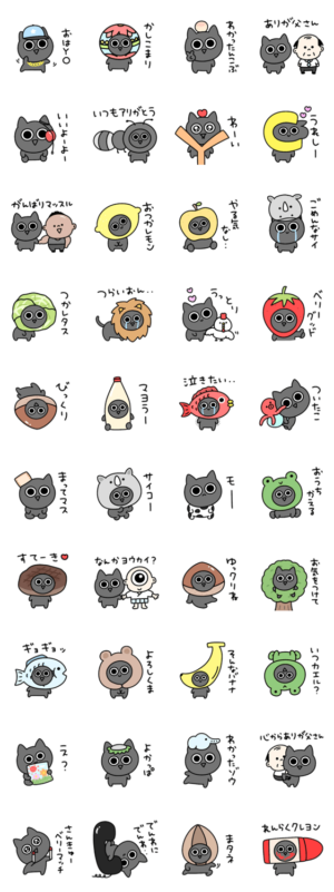 シュールなミニ黒ねこのゆるいダジャレスタンプです。eribo より発売