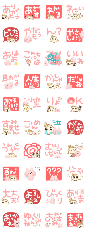 ほぺ美ちゃんシリーズ!ふかふかなウサギちゃんがゲスト♪大きい文字で見やすいスタンプです。小さな幸せ/感謝あさごぱん より発売