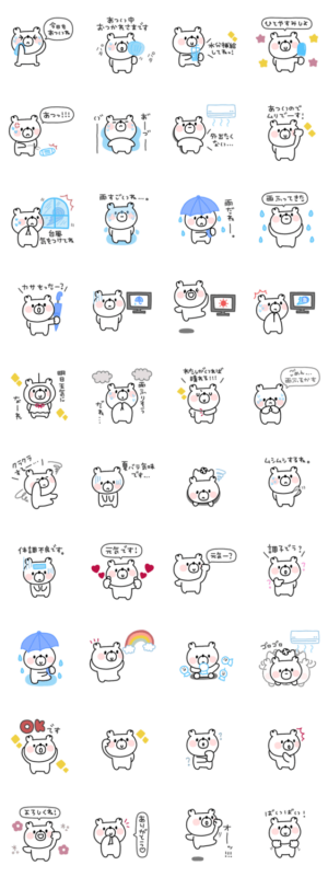 梅雨、夏に1つあると便利なくまのスタンプです。シンプル/かわいい/ゆる/大人/可愛い/くすみカラー/毎日使える/あいさつ/友達/家族/恋人/くま/日常/連絡/吹き出し/夏