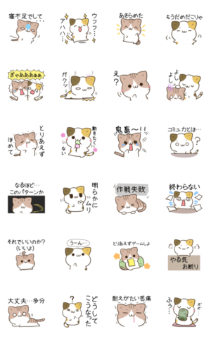 お疲れ気味 やる気が出ない時に使えるゆるかわ三毛猫とキジトラ白猫のアニメーションスタンプ第3弾 仕事 締め切り 進捗 社畜 学校 体調不良 春夏秋冬 ソシャゲ