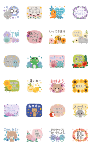 動く!動物とお花♡夏スタンプ スタンプ情報