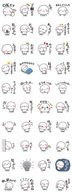 しろまるの優しく気持ちを伝える田舎言葉スタンプです。大人フォントver【作:いしいともこ】