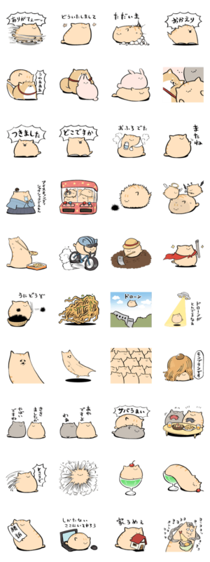まるまるとした感じにデフォルメされたねこちゃんのスタンプ。なかなか変わった雰囲気のスタンプが多いが、続き物と考えれば妥当なところか。全体的にシュールなかわいさが光る。