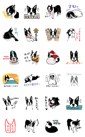 ボステリちゃん大好きスタンプ!イベント事や関西弁など今までのいろいろボストンテリアシリーズにプラスして使えるものをちょこっと作りました。yama より発売