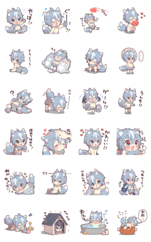 毎日使える元気なオオカミ少年のスタンプ第2弾!仔犬っぽいけどオオカミです!はしもきくり より発売