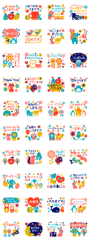 かわいい北欧風イラストのスタンプです。よく使う言葉を集めました。Labo-zero より発売