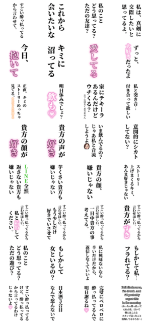 【BIGスタンプ】酒に酔ってる時あの人に勢いよく送りたい 【面白い/ネタ/煽り/酒/飲み会/恋愛/夫婦/嫁/旦那/妻/夫/彼氏/彼女/浮気/束縛/いたずら/メンヘラ/カップル】 ※このスタンプはトークルームで大きく表示されるBIGスタンプです。Yoroniku より発売