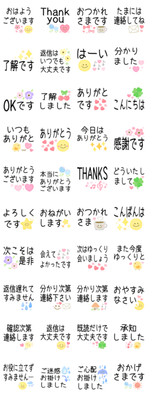 パステル調で優しい色合い♡よく使う言葉を集めた、使い勝手の良い、見やすいデカ文字スタンプです。