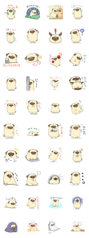 日常に使いやすい文字入り、茶パグのスタンプです。なづき より発売