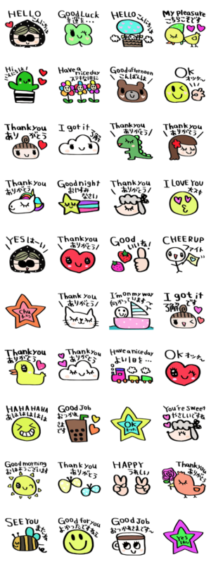 シンプルな日常会話スタンプです。日本語&英語スタンプ