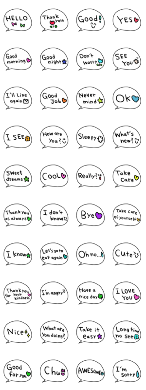 nenerinシンプル日常会話スタンプ350英語 スタンプ画像一覧