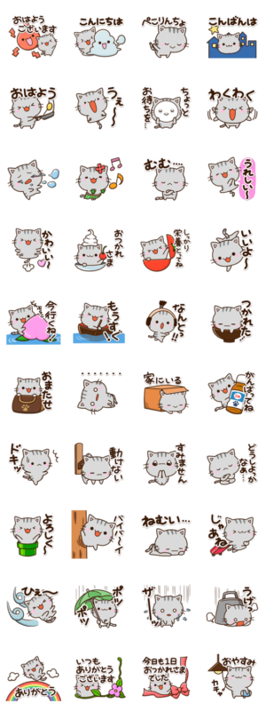 アメリカンショートヘアの【ちびアメ】。絵文字と着せかえもあります。楽しく返信できる猫スタンプ。アメショやサバトラ等のネコ好きな方にぜひ。【かたこ】かたこ より発売