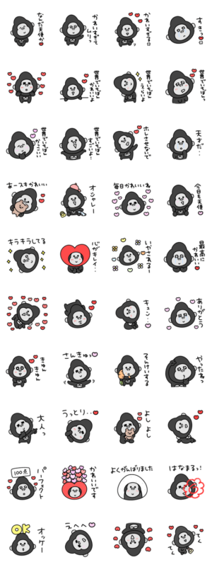 褒めまくる♡シュールなミニゴリラのスタンプです。eribo より発売