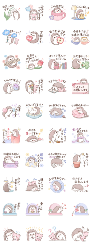 ♡やさしい敬語♡ふんわりハリネズミ スタンプ画像一覧