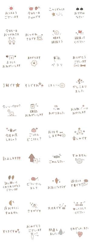 大人女子でも使いやすいくすみカラーでまとめた、お洒落で可愛いスタンプです。シンプルで使いやすい。毎日の日常に。敬語。