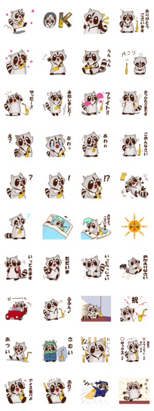 アルトサックスを吹くアライグマ スタンプ画像一覧