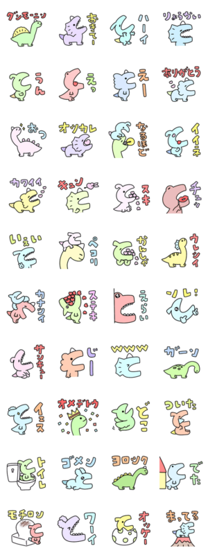 シュールなミニ恐竜のデカ文字スタンプです。eribo より発売