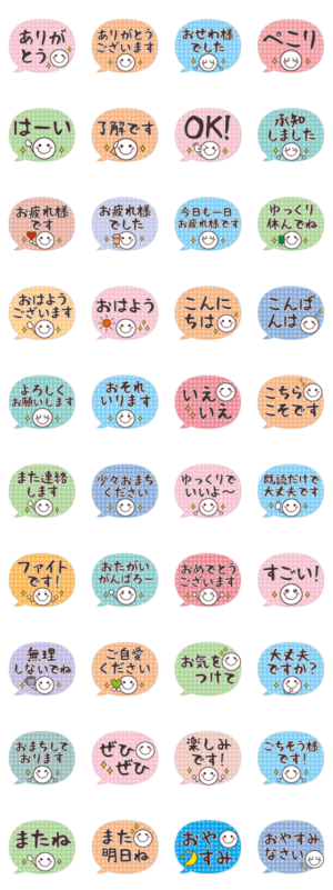 シンプルで使い勝手の良い、カラーふきだしスタンプです。HRYs より発売