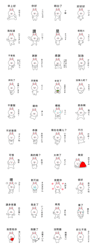 コニー中国語よく使う言葉スタンプです。カップル、友達、中国語を勉強している方に最適です。 ※BROWN & FRIENDS をみんなでつくろう!キャンペーン参加スタンプです肉大好きっ子 より発売