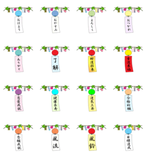 夏の風物詩の風鈴と七夕飾りです。短冊にお願い事を書きました。ヨシダアカリ より発売