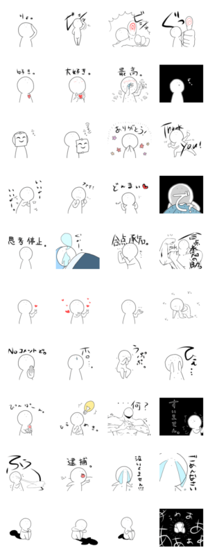 「無表情に反応するスタンプ」第10弾です。ついにここまで来ました。彼の名前は白塗り君です。今回は汗っかき。てふ より発売