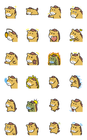ゆるい馬のアニメーションスタンプです。うま/動く/どうぶつ/動物/手書き/毎日使える/シュール/ユニーク/かわいい/シンプル/ゆるかわ/面白い/日常