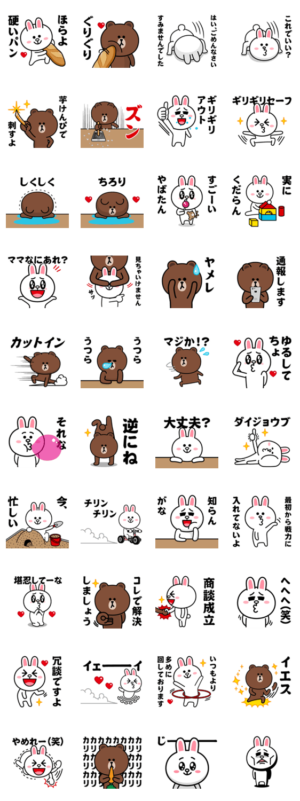 LINEキャラクターズのブラウン&フレンズからコニーのラブラブ、恋人、彼氏彼女、わんぱく、アベック、ペア等をテーマにしたスタンプです。 ※BROWN & FRIENDS をみんなでつくろう!キャンペーン参加スタンプです4A-Studio(よんえーすたじお) より発売