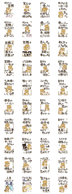 茶色い犬のちゃちゃ丸の誰かに届いてほしい言葉です。(柴犬、〇〇犬・・・日本犬のつもりです...) ※このスタンプはトークルームで大きく表示されるBIGスタンプです。藤花 より発売