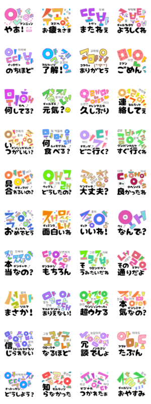 デカ文字ハングル【和訳・読みがな付き】 スタンプ画像一覧