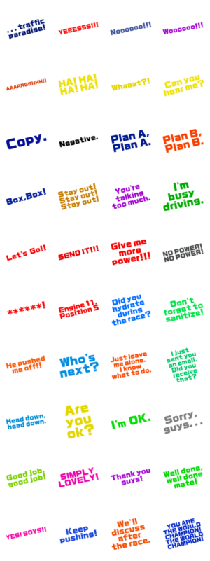 [F1] レース中のラジオ・無線メッセージ スタンプ画像一覧