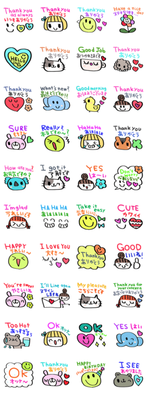 シンプルな日常会話スタンプです。日本語&英語スタンプ
