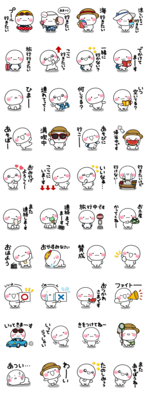 しろまるの毎年使える夏(夏休み)お出かけスタンプです。使用頻度が高い基本スタンプも含まれておりスタンプ初心者の方にもオススメです。【作:いしいともこ】