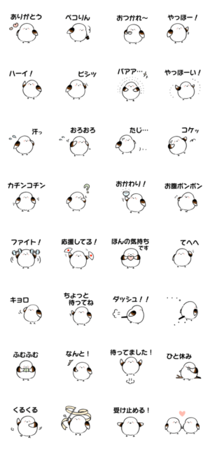 ぷっくり、ほわほわとしたシマエナガのスタンプです。lumi より発売