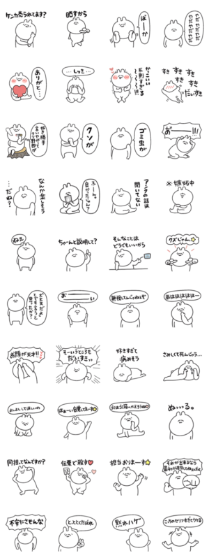 ゆるうさのお友達、ふわうさの情緒不安定スタンプ登場!なんか地雷臭…なんかメンヘラ臭が…毒吐いてても可愛いふわうさ、是非お使いください!みかん より発売
