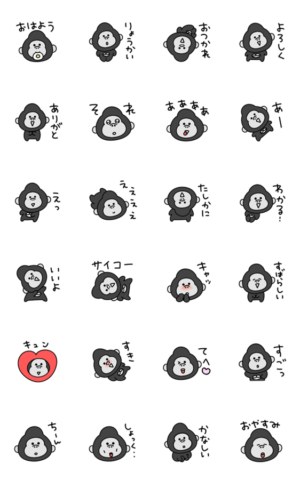 今日も元気に動き回るシュールなミニゴリラの動くスタンプです。毎日使えるフレーズです。eribo より発売