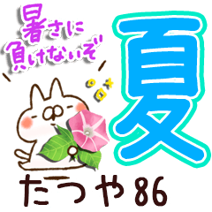 たつや/タツヤ専用86。ねことうさぎの名前スタンプ/夏/挨拶/夏休み/デカ文字/大人可愛い/敬語/猫/花火/暑い/猛暑/気づかい/体調/海/熱中症/天気/台風/山田まぽん作
