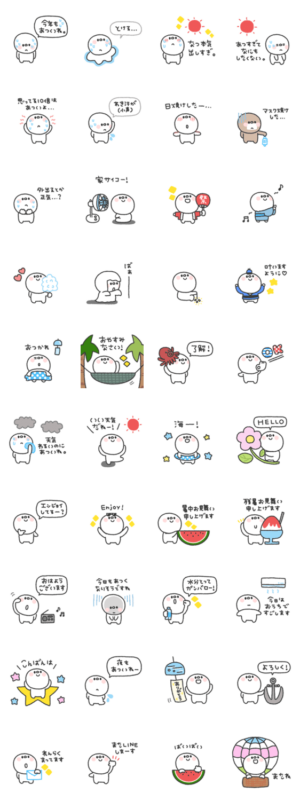 ゆるくてかわいいしろたまスタンプです。夏/かわいい/メッセージ/あいさつ/手書き/スマイル/吹き出し/大人女子/シンプル