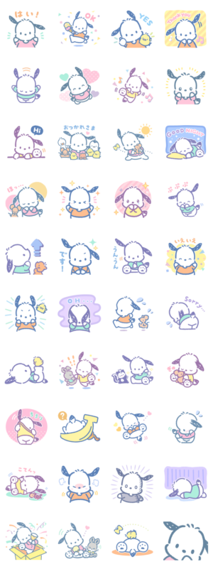 ポチャッコが好きなのでいろいろな表情を楽しみながらスタンプとして使えるのは嬉しい。パステルカラーなのも気に入っている。