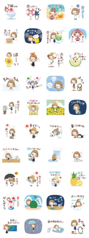 前髪短めな女の子の大人可愛い♡夏に毎日使えるスタンプです♪