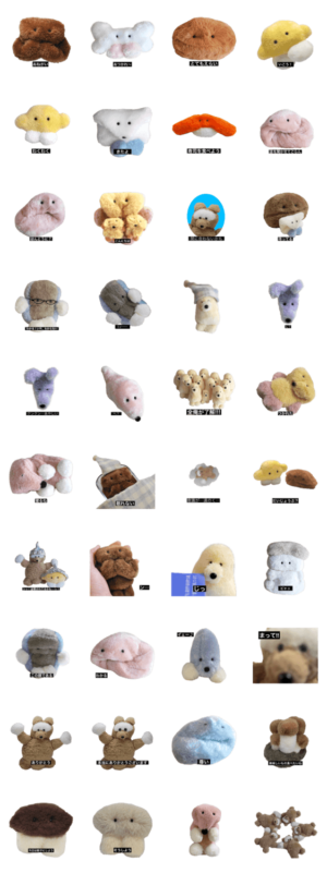 リアル人形のスタンプ。なんとも言えない形のものが多く、分かりやすくはないのは苦しい。一方、いい意味で他にはない独特の味があり、子供向けのパペットアニメなどを思い起こさせる。
