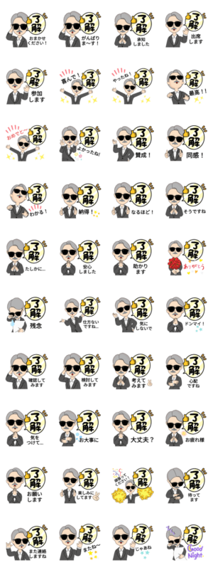 シニア紳士のコメント付『了解』スタンプ スタンプ画像一覧