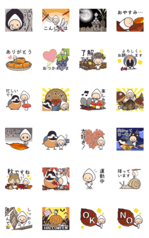 白い小人の【秋】スタンプ スタンプ画像一覧